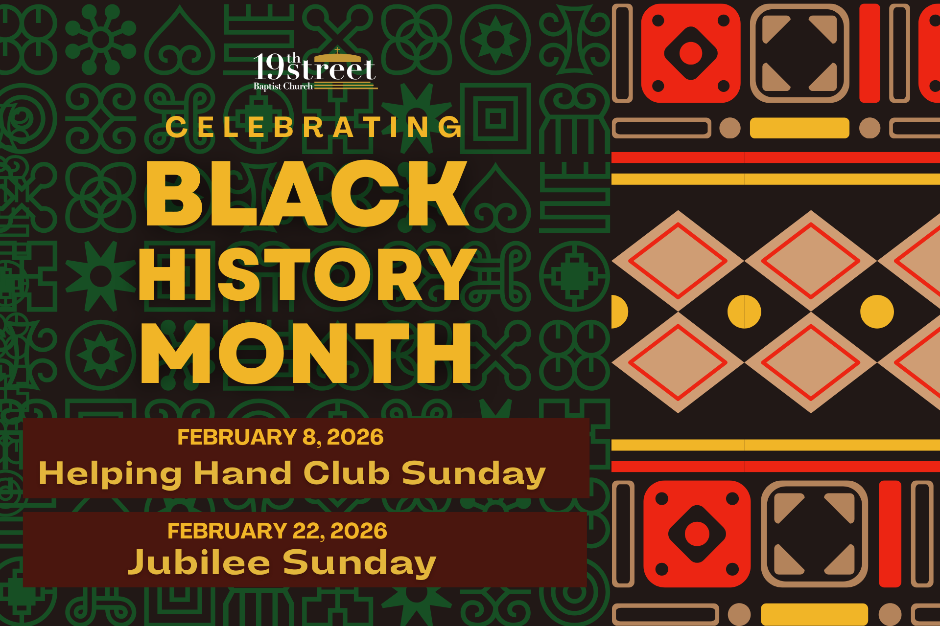 Through Jubilee Sunday, Nineteenth Street continues the long tradition of commemorating Black History. It is a great day of reflection, celebration, and fellowship in honor of Black History Month!